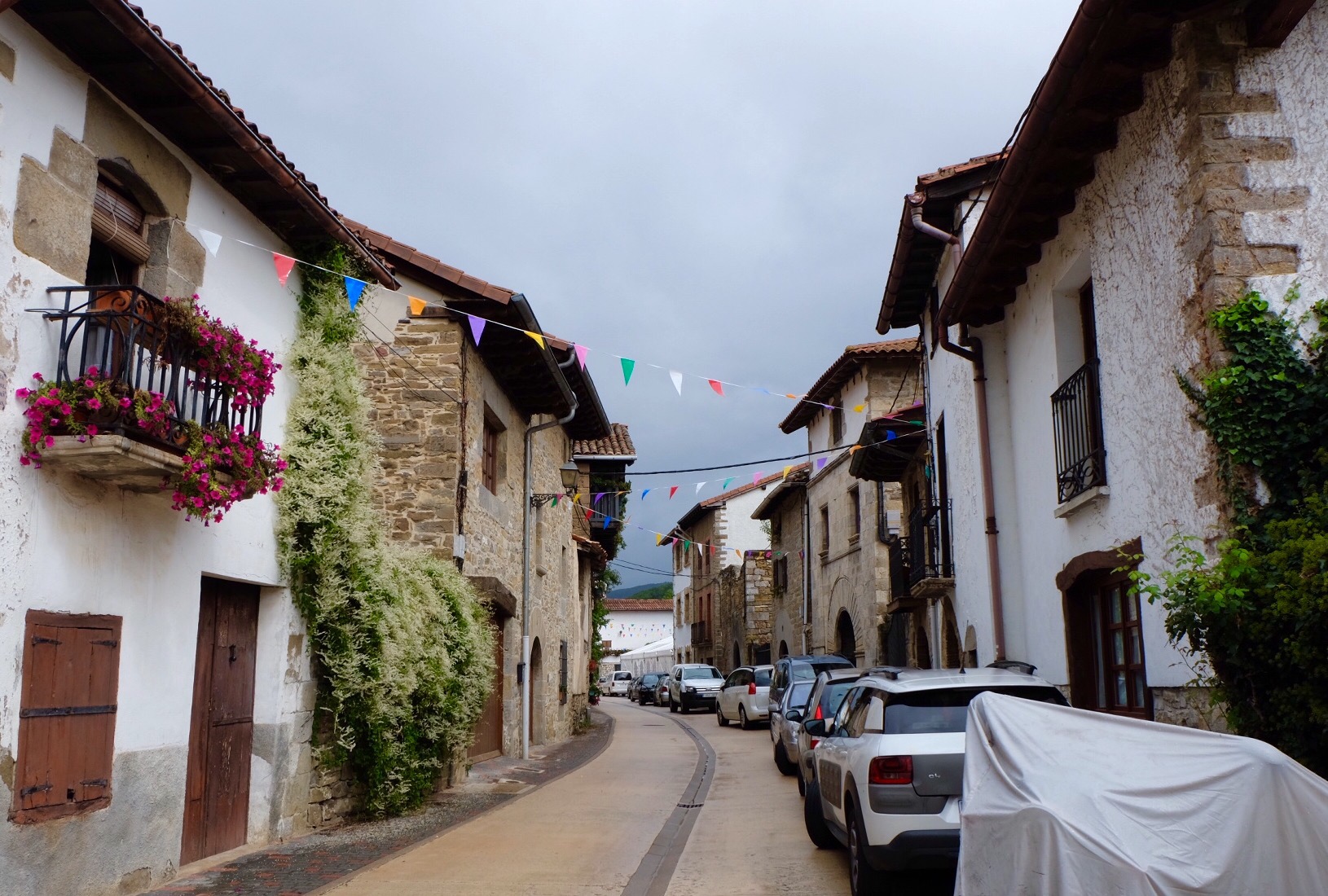 Our accommodation tonight in Larrasoana is much more salubrious. The alberque San Nicolas (we chose it because we knew we’d easily remember its name!) is new; there’s plenty of hot water, and a very efficient washing machine and drier. Everything is clean and dry again – bliss. Our room is light and airy, we are sharing with one other couple – they’re from Denmark.