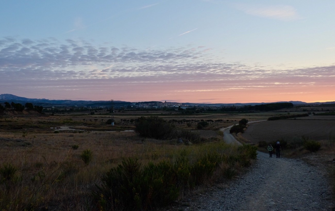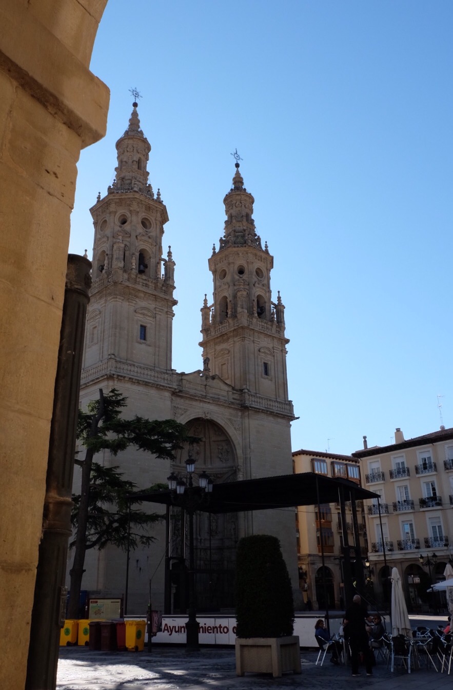 Much of today’s 24 kilometres was through the city of Logrono – they had a huge fiesta, a wine festival last night, in honour of their Rioja wine. I’m sampling it as I tap into my phone – nice, very nice. This morning the pavements of Logrono were slick with water from the street cleaners’ hoses; those that hadn’t yet been cleaned stank of old wine and other less pleasant odours. We had to be careful of broken glass.