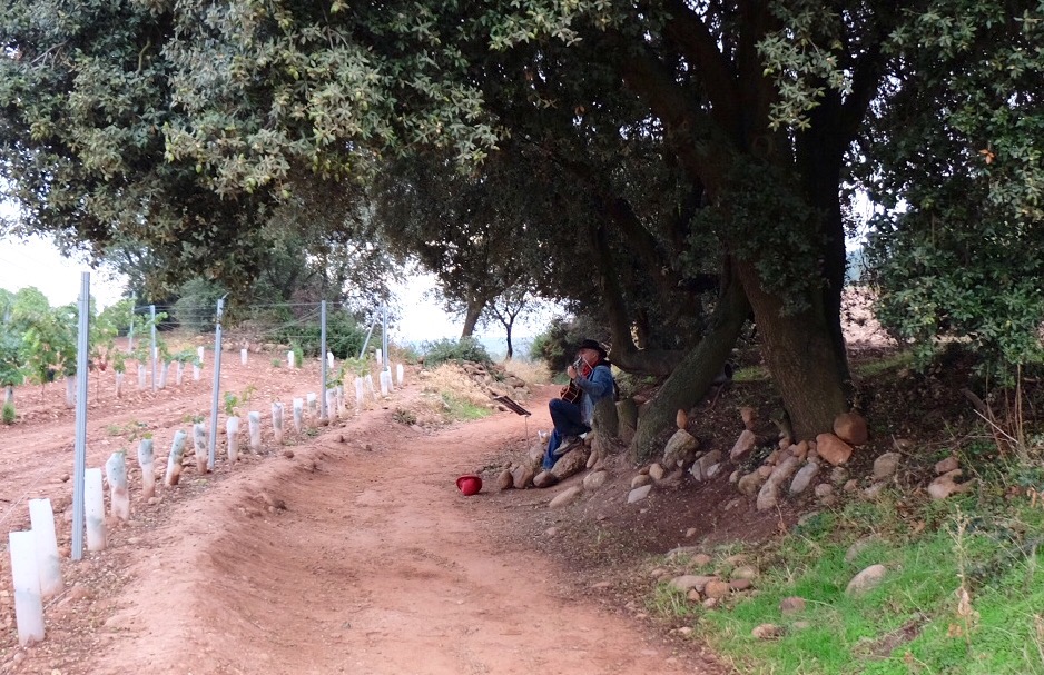 Camino angels are a feature of The Way. Often they have cold drinks, fresh fruit, sometimes hot coffee, all for a donation. Today we met this musician playing traditional hymns. His music made for a relaxing interlude while we stripped off our rain gear.
