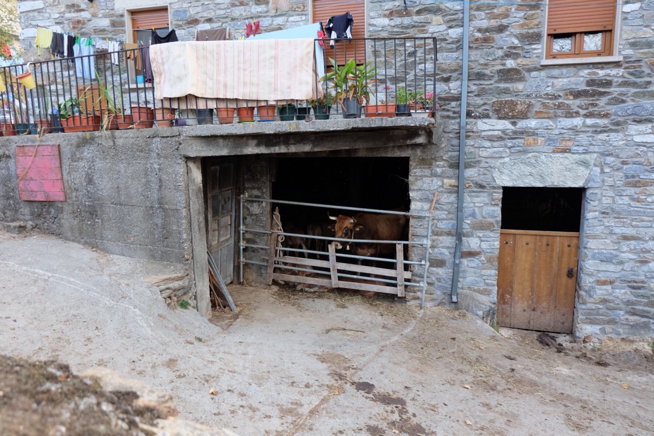 This cow and her calves are protected from the elements in their stable beneath the farmer’s house.
