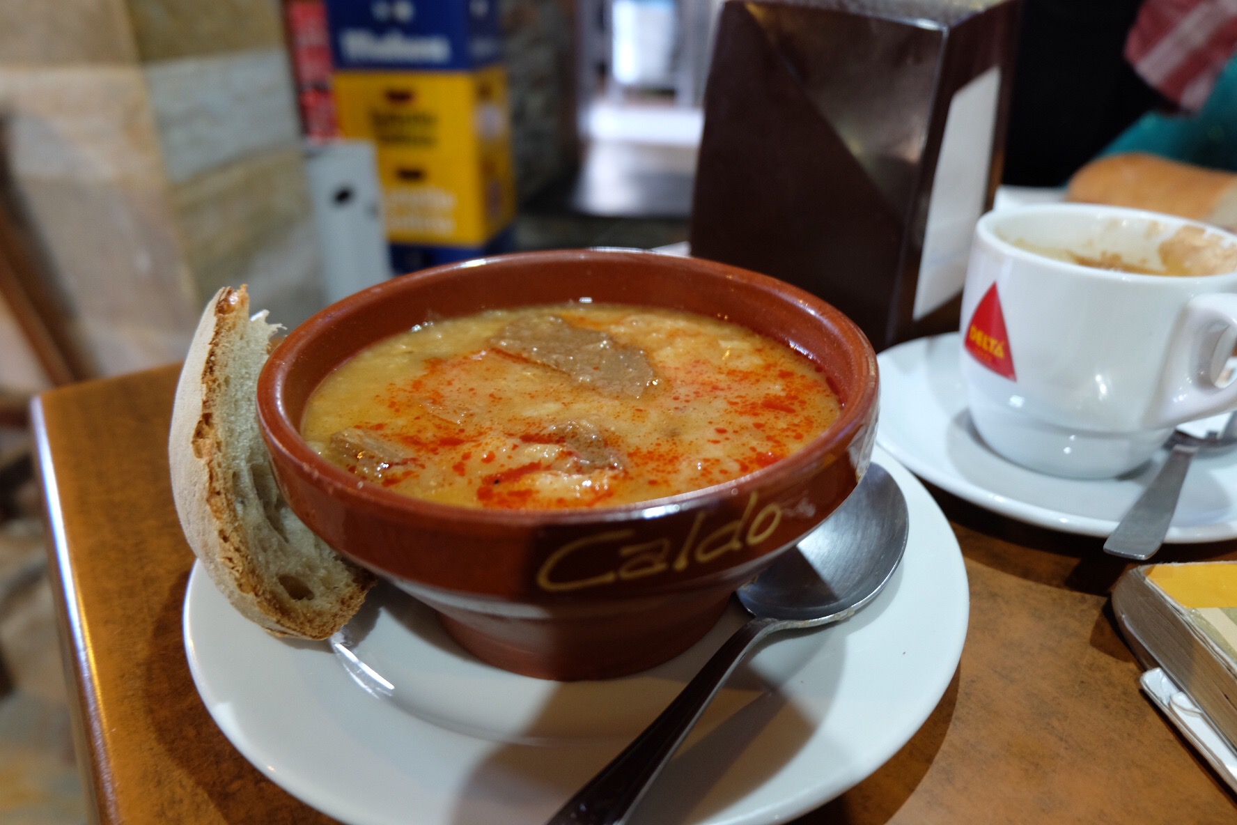 and my very favorite picture – for some reason – it was the garlic soup with the bread.